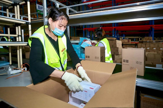经过无限极物流仓员工加班加点的工作,从3月19日起,“复工防疫包”已陆续发货,分批发送到全国专卖店。
