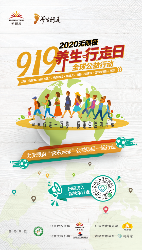 金秋9月,为推动行走养生的普及,推广健康的生活方式,提升全民健康素质,由中华中医药学会联合无限极发起的"919养生行走日"又来了,今年又有哪些看点?