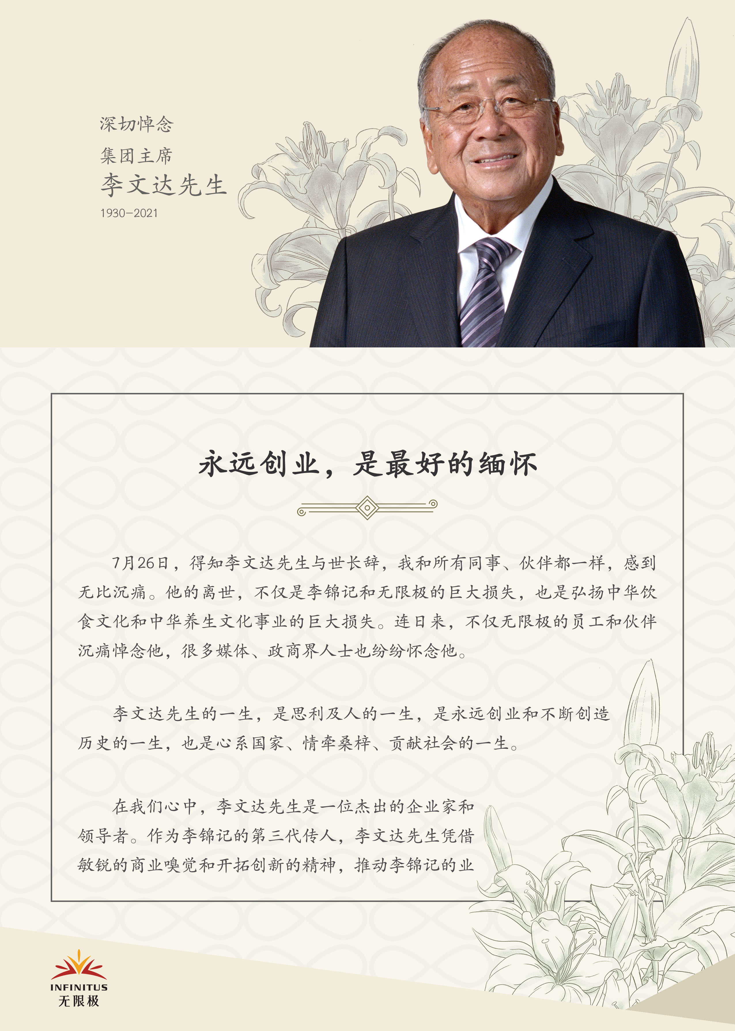 深切缅怀李文达先生,无限极全球同步举办追思会