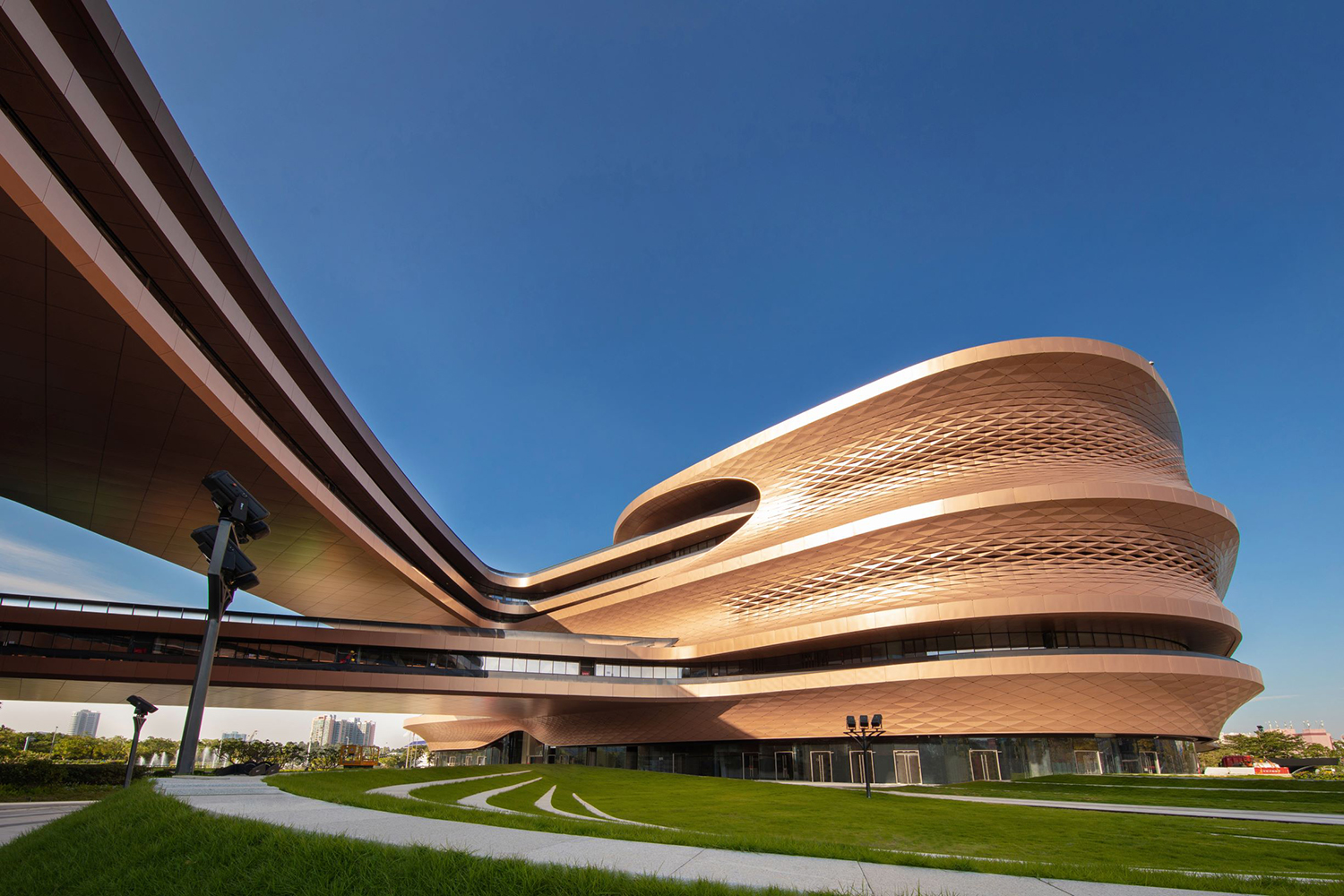 上午9:30,相建强理事长一行抵达无限极,胡贞忠副总裁等研发人员热情陪同并参观无限极广场。广州无限极广场位于白云新城核心地带,占地面积4万5千平方米,总占地面积18万平方米,设计者是世界上第一位获得普利兹克建筑奖的女性建筑师扎哈‧哈迪德(Zaha Hadid)。
