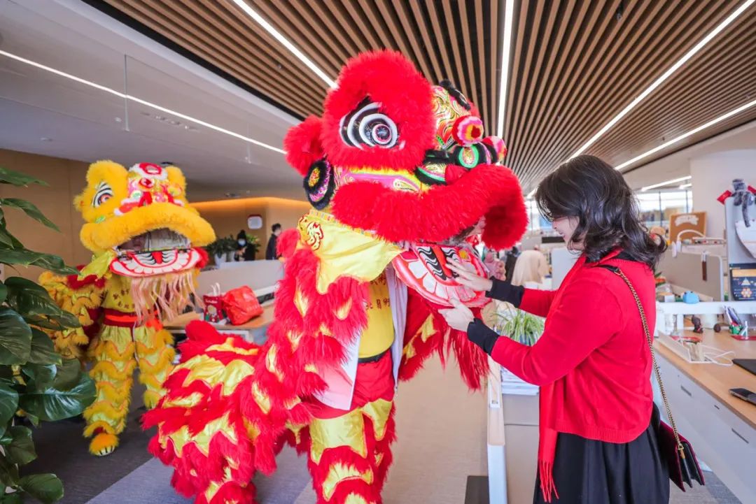 锣鼓声响彻了整个广州无限极广场,象征着吉祥如意的醒狮队伍走遍了公司的大小角落,在办公区与行政员工们互动合影并送上新春祝福。