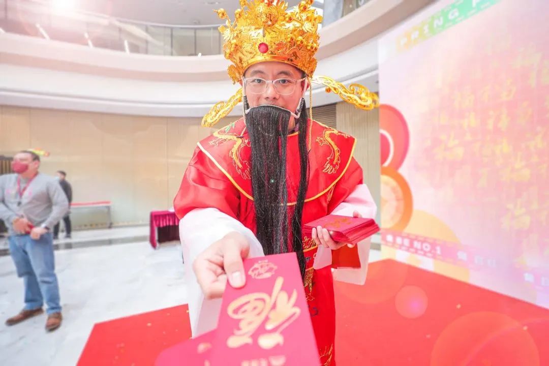 兔年开工迎大吉,财神集结派红包。在广场A座南中庭,醒狮队伍绕场贺岁,俞江林先生代表公司为大家送上了新春祝福,并对所有同事和他们背后的家人表达了诚挚的感谢,他说:“过去三年各行各业都经历了许多挑战,今年我们迎来了这么一个喜气洋洋的气氛,离不开大家对公司的支持和鼓励,祝大家兔年大吉,工作顺利,事业有成,恭喜发财。”随后新春开工FamilyDay活动正式开始。