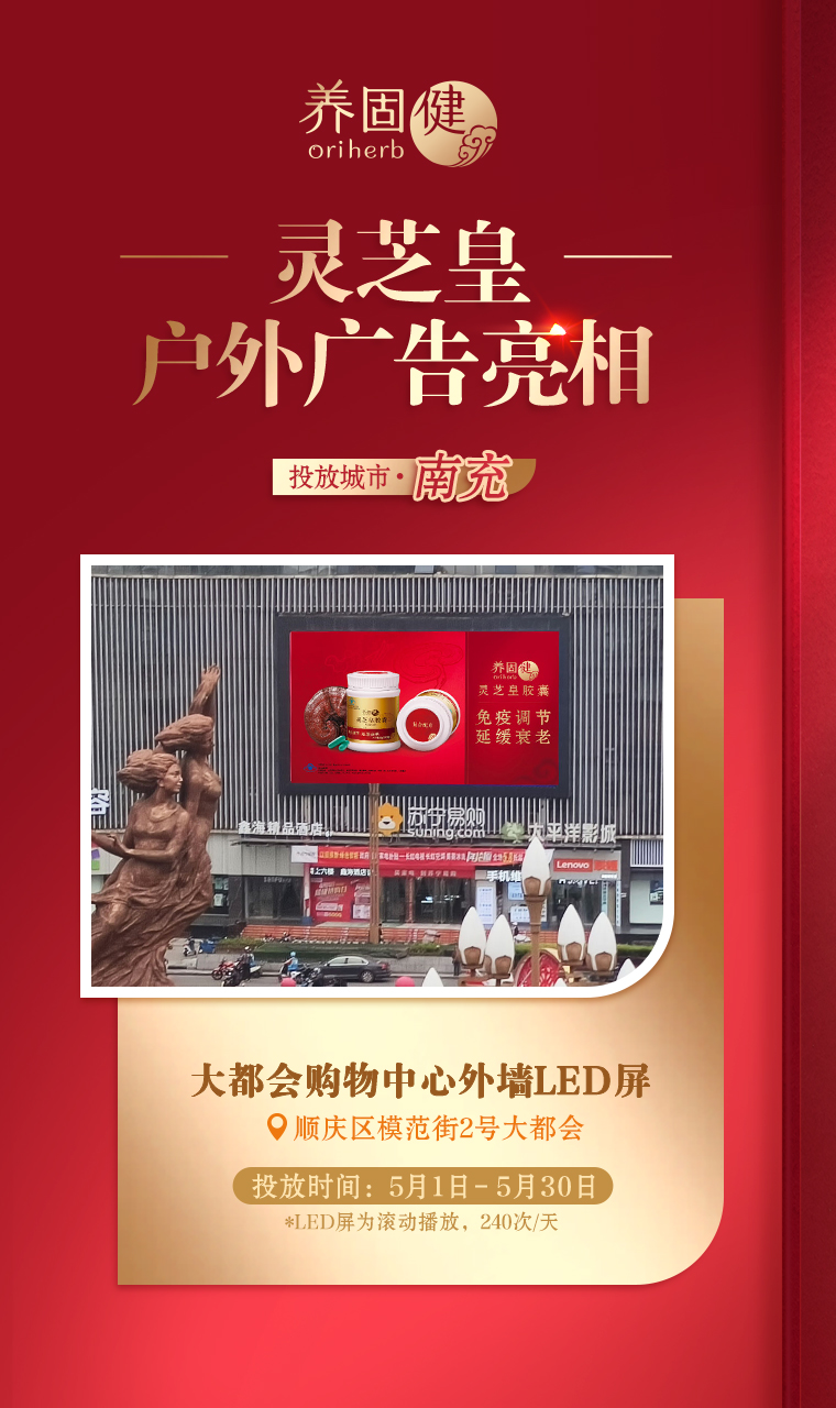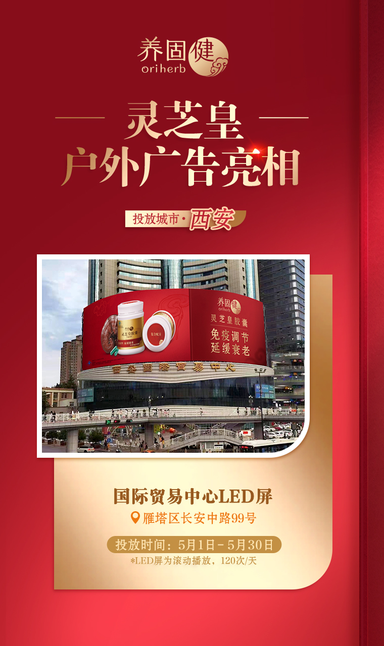 养固健灵芝皇广告惊艳亮相全国16座城市