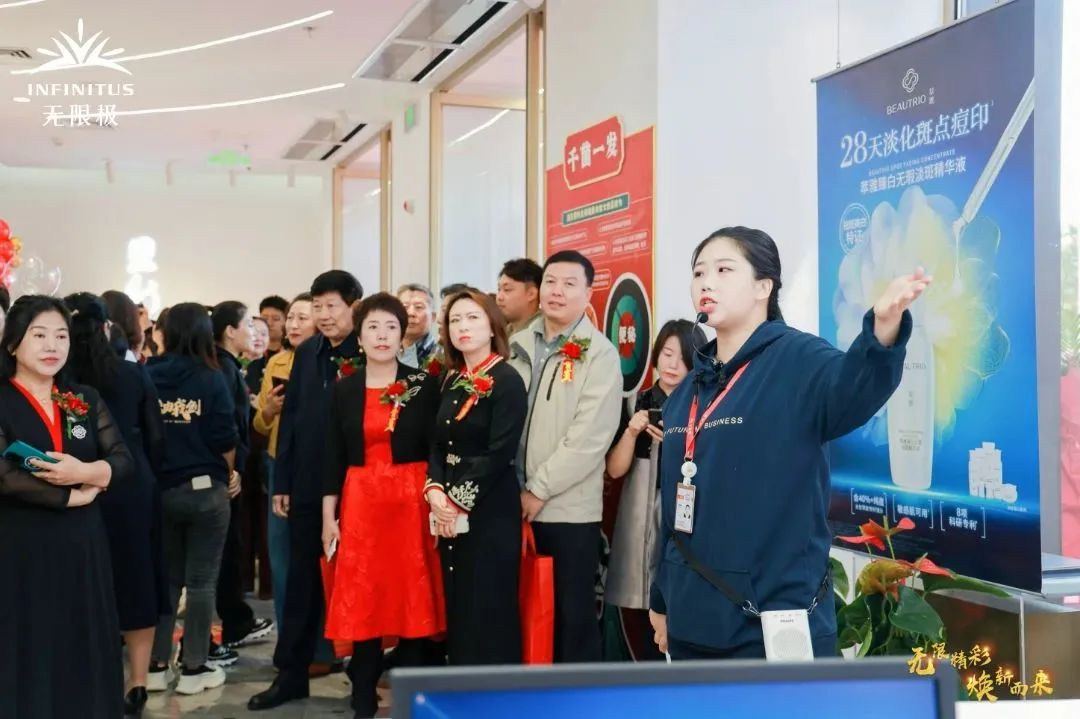 公司区域总经理钟炜先生的话音刚落,寓意着喜庆和吉祥的红稠瞬间揭起,全新的无限极牌匾呈现在大家面前,无限极长春体验中心正式焕新启航!